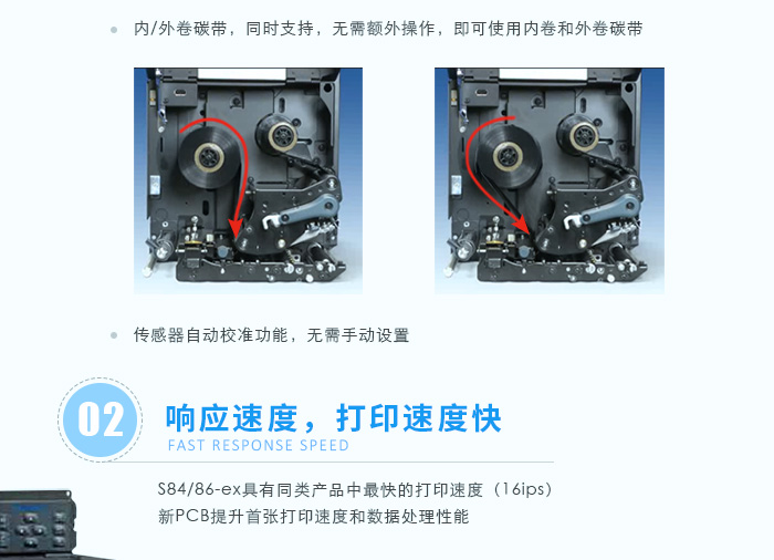 新機型采用了很多新設計方便操作人員去使用,系統(tǒng)方面沿用以確保持續(xù)運行。打印頭更換非常簡單緣于無需工具、更長接線且便于檢修。滾軸更換簡單快速緣于環(huán)扣設計;傳感器蓋的不粘膠表面設計使工程師或操作人員無需工具就能輕松清潔或更換零部件。