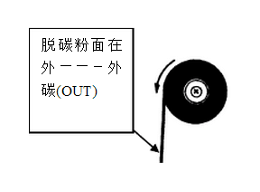 碳帶從覆碳面來分可以分為外碳(OUT)和內(nèi)碳(IN),覆碳面在卷的外面叫為外碳,覆碳面在卷的里面叫為內(nèi)碳。