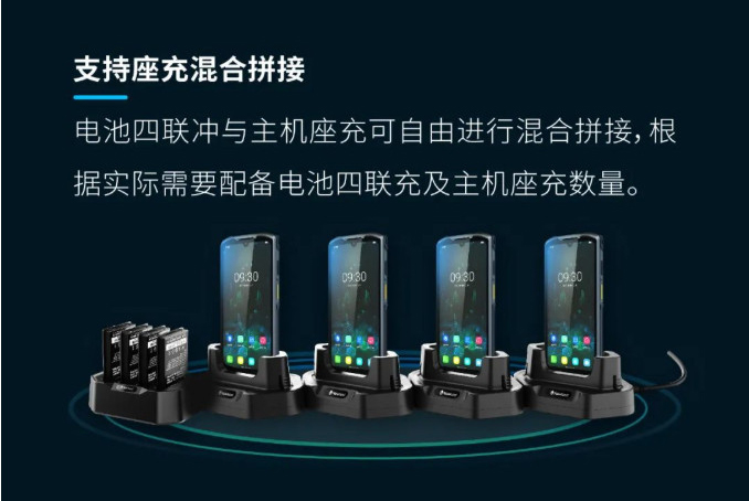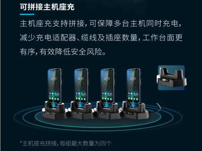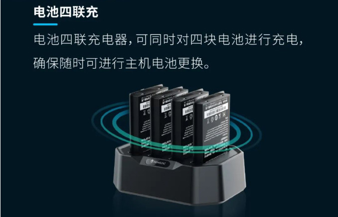 電池四聯(lián)充電器,可同時對四塊電池進行充電:確保隨時可進行主機電池更換。 可拼接主機座充 主機座充支持拼接,可保障多臺主機同時充電,減少充電適配器、纜線及插座數(shù)量,工作臺面更有序,有效降低安全風(fēng)險。 "主機座充拼接,每組最大數(shù)量為四個 支持座充混合拼接 電池四聯(lián)沖與主機座充可自由進行混合拼接,根據(jù)實際需要配備電池四聯(lián)充及主機座充數(shù)量。